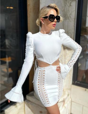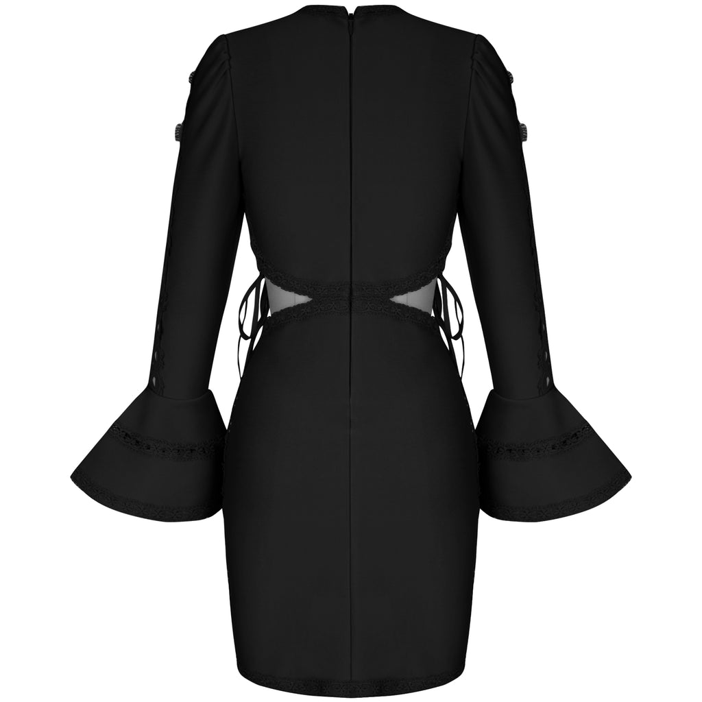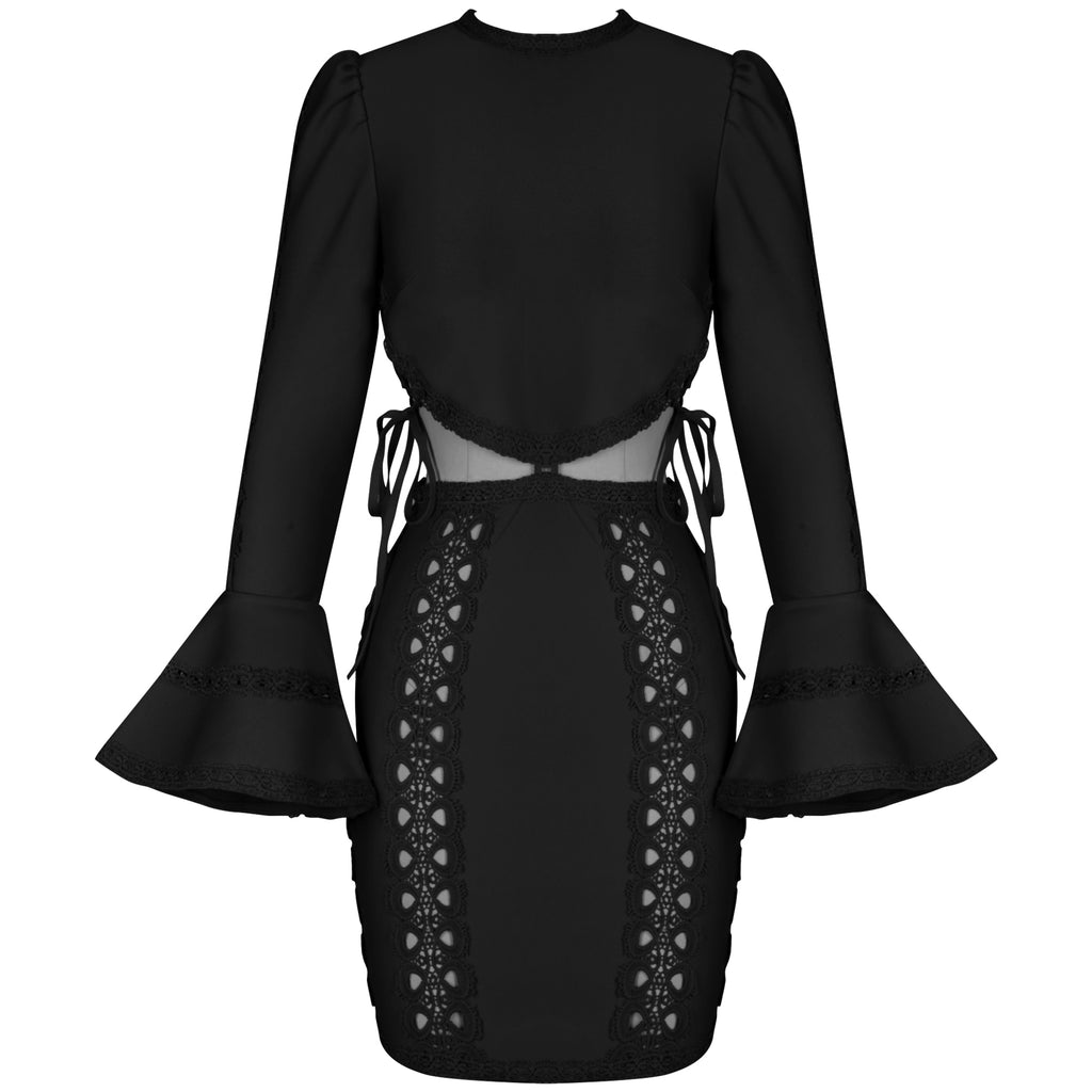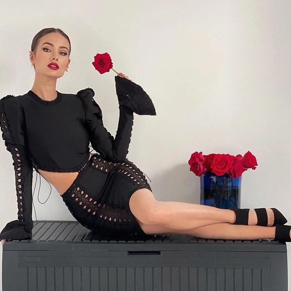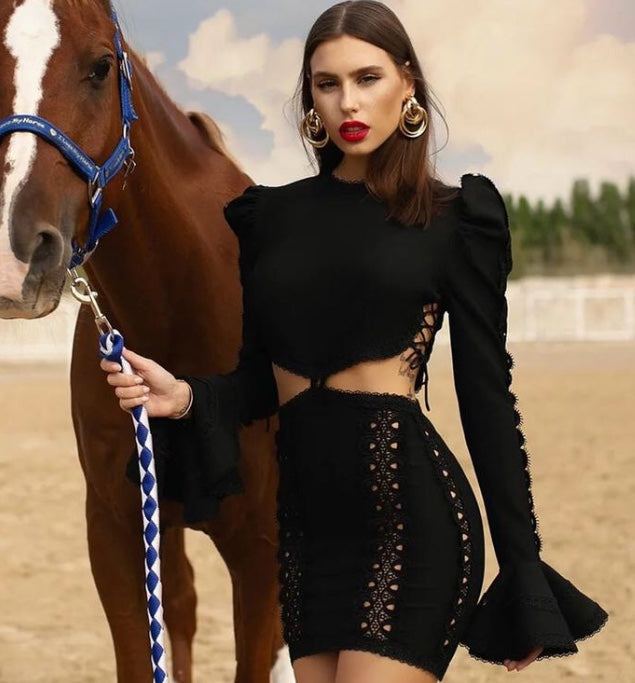 O Vestido Curto Justo com Manga Longa e Renda Recorte na Cintura foi feito especialmente pra você, se sua intenção é causar impacto e exalar confiança por onde passar. A combinação da renda vazada, dos recortes estratégicos na cintura e da modelagem justa cria um visual simplesmente deslumbrante, que valoriza cada curva do seu corpo com elegância e ousadia. As mangas longas com babado na barra trazem um toque sofisticado, enquanto os detalhes vazados garantem aquele charme arrebatador.