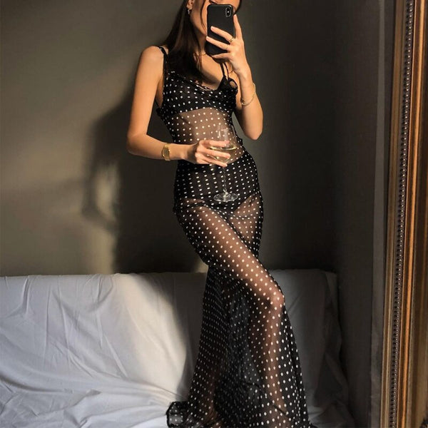 Vestido Longo Preto Tule de Poá e Alcinha! O vestido que traduz sensualidade e estilo em cada detalhe. Feito em tule com estampa de poá (bolinhas), ele é perfeito para quem busca um visual ousado, leve e super sofisticado. A transparência do tule garante um look fashionista e moderno, ideal para usar na praia, pool parties, viagens ou até mesmo em sobreposições criativas.